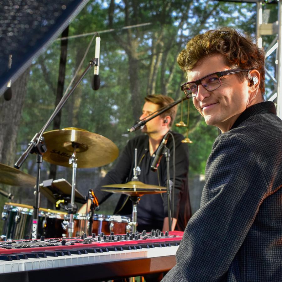 W poniedziałek (17.06.2024) w ogrodzie Willi Lentza wystąpili Radosław Bolewski (wokal, perkusja) oraz Maciej Tubis (fortepian i syntezator basowy).