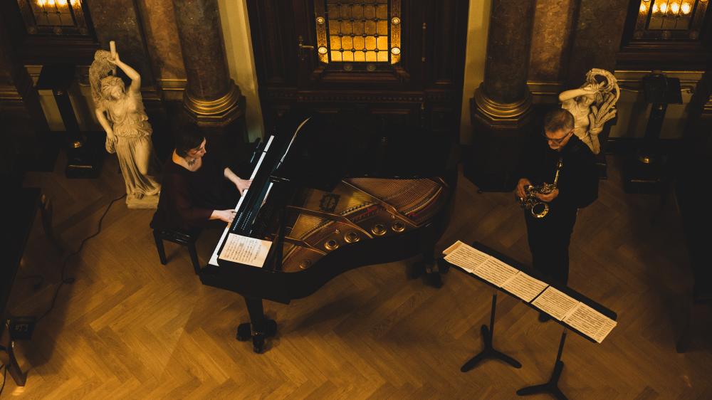 Saksofonista – Dariusz Samól wraz z pianistką Urszulą Szyryńską przedstawili współczesne utwory napisane na instrument skonstruowany w pierwszej połowie XIX wieku przez Adolpha Saxa.