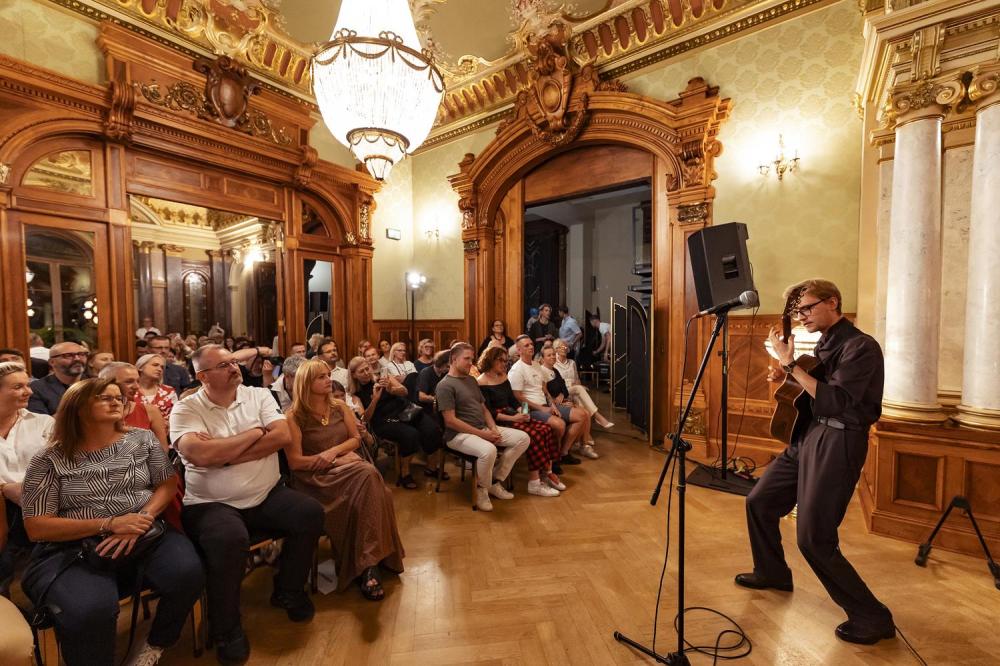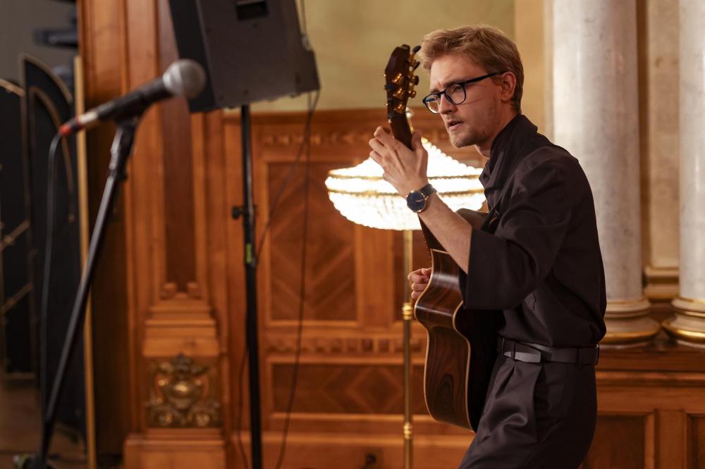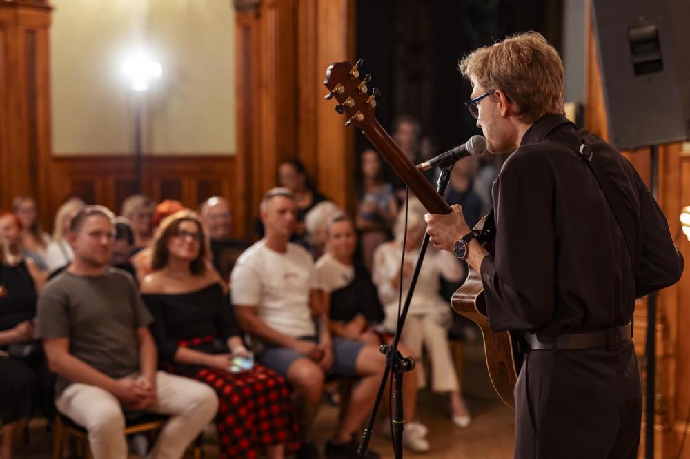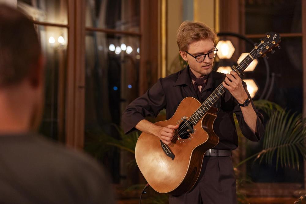 Artysta zaprezentował swoje autorskie kompozycje, w których fingerstyle spotyka rockowe brzmienia, jazzową improwizację i klasyczną elegancję 🌌🔥. Jego koncert – pełen energii, emocji i technicznej wirtuozerii – stał się prawdziwą muzyczną podróżą, która na długo pozostanie w pamięci naszych gości. W ramach projektu Juvenum Hortus Willa Lentza wspiera rozwój artystycznej drogi Janka Pentza 🌱🎶.